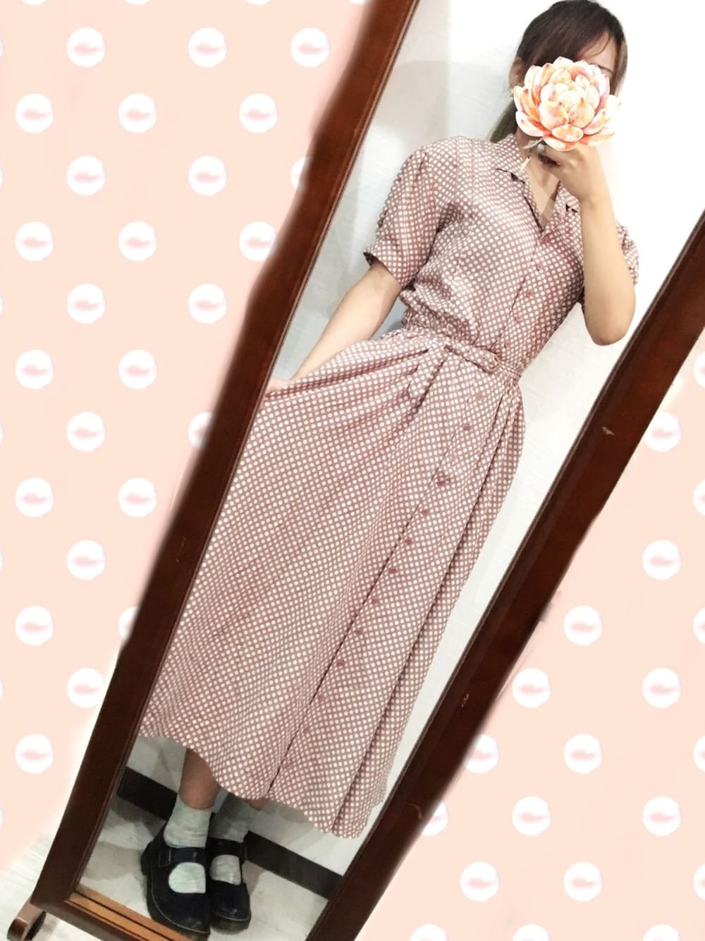 20190823 私、あんまりピンク色の服を着ないようだね笑笑 今日はピンクハウスのピンクドット柄のワンピースです〜 裾は広くて、素材はポリ100だから歩く時ふわふわだ(*´∇`*) 前あきは全部ボタンがついて、今度前スカートを開いて下にスカートを着てみようと考えてる〜