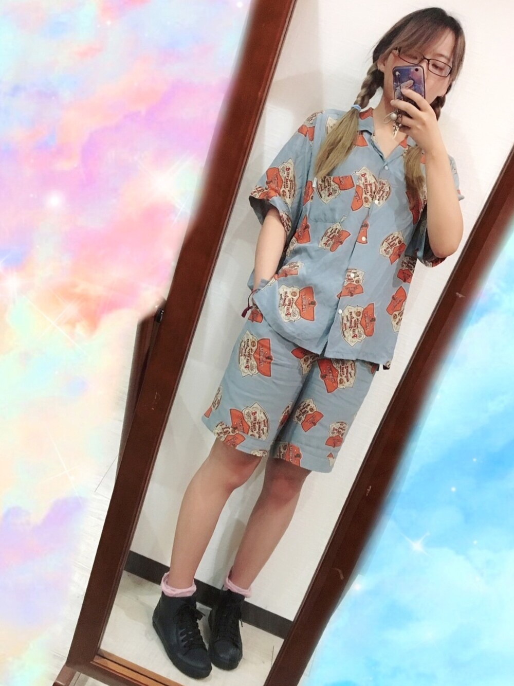 20190830 すっぴんの一日だった… 今日はピンクハウスのセットアップだ 渋い?水色にえんじ色のプリント柄で、なんか怠く見える感じだねー 実は朝同僚にパジャマだと言われた笑笑 でもかわいいって(о´∀`о)