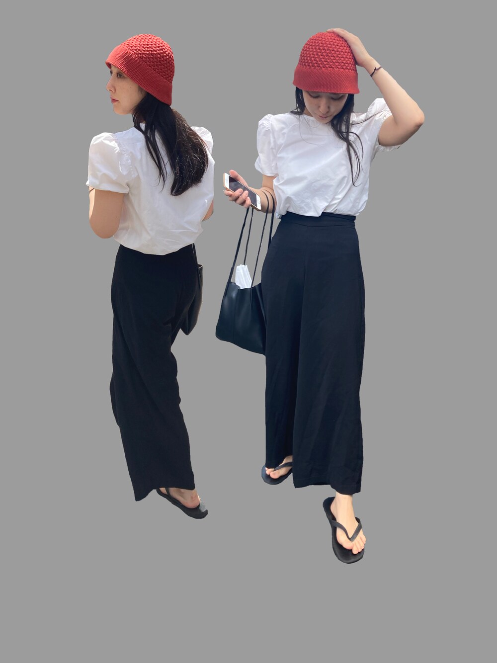 Ray beamsのサマーニットハットが主役のコーデ! 形がほんとに可愛い〜 全体的に韓国っぽさがあるコーデになりました〜
