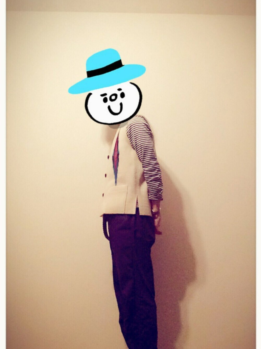 写真では伝わりにくいですが、パンツ👖は鮮やかなブルーなんです… 電球色の間接照明だと上手く色が撮れないですね… 次回は太陽光で撮ってみます(u_u)