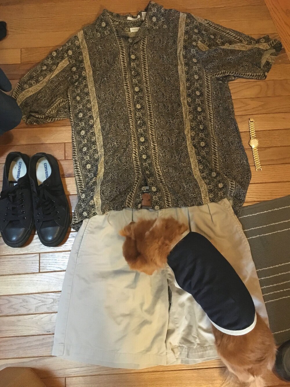 ドラフトを機に色々アップしようという気になったのですが、自分を撮る習慣があまりないので今回は服だけで。いそいそ撮影してたら犬が邪魔しにきました。 このシャツ古着なのですがお気に入りです。 お靴はABCマートにて購入です。お安いので助かります。