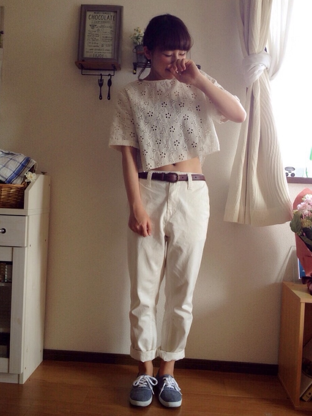 お店はもう冷房ついてるので、 仕事中はボーダーのチューブトップ着て おなか守った( ૭ ᐕ)૭ トップス:ANY MORE