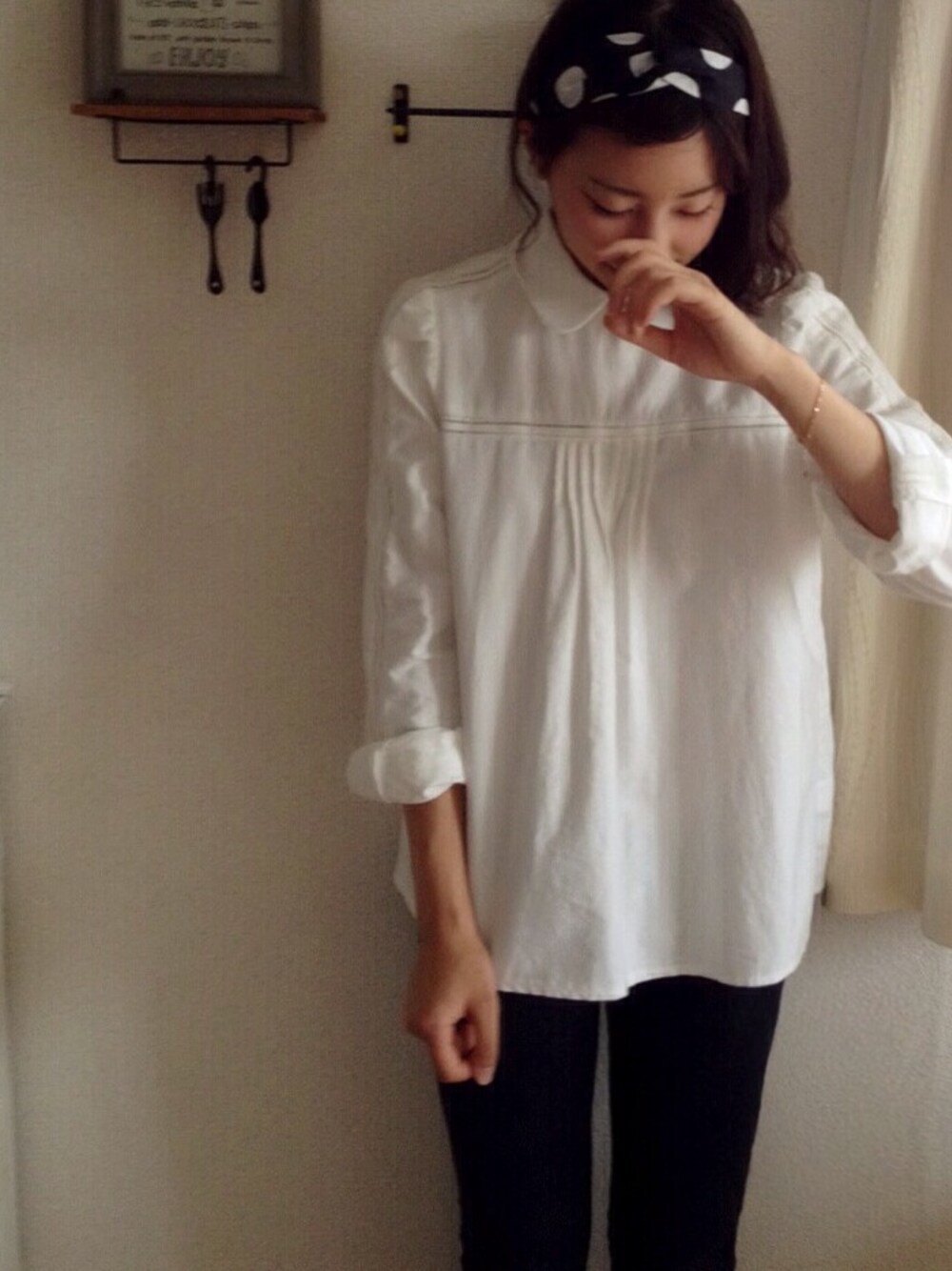 細かいレースが入ったコットンのシャツは、 白シャツ探してたときにひとめぼれ✧ はじめて着る日はやっぱりインもベルトも なしで着たくなります(๑´ᴗ`๑) 働いてるお店の入り口にツバメが巣を作ってて それがとてもうれしかった⸜( ˆ࿀ˆ )⸝ シャツ:ANY MORE レギンス:GU バッグ:used