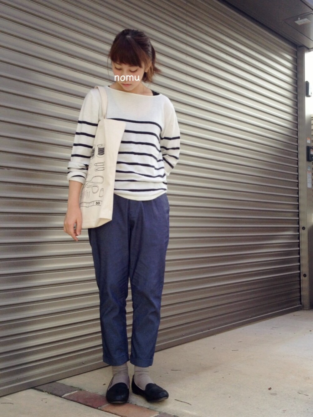 nomuのニット/セーター「ソフトアンゴラ ボーダーニット」を使ったコーディネート