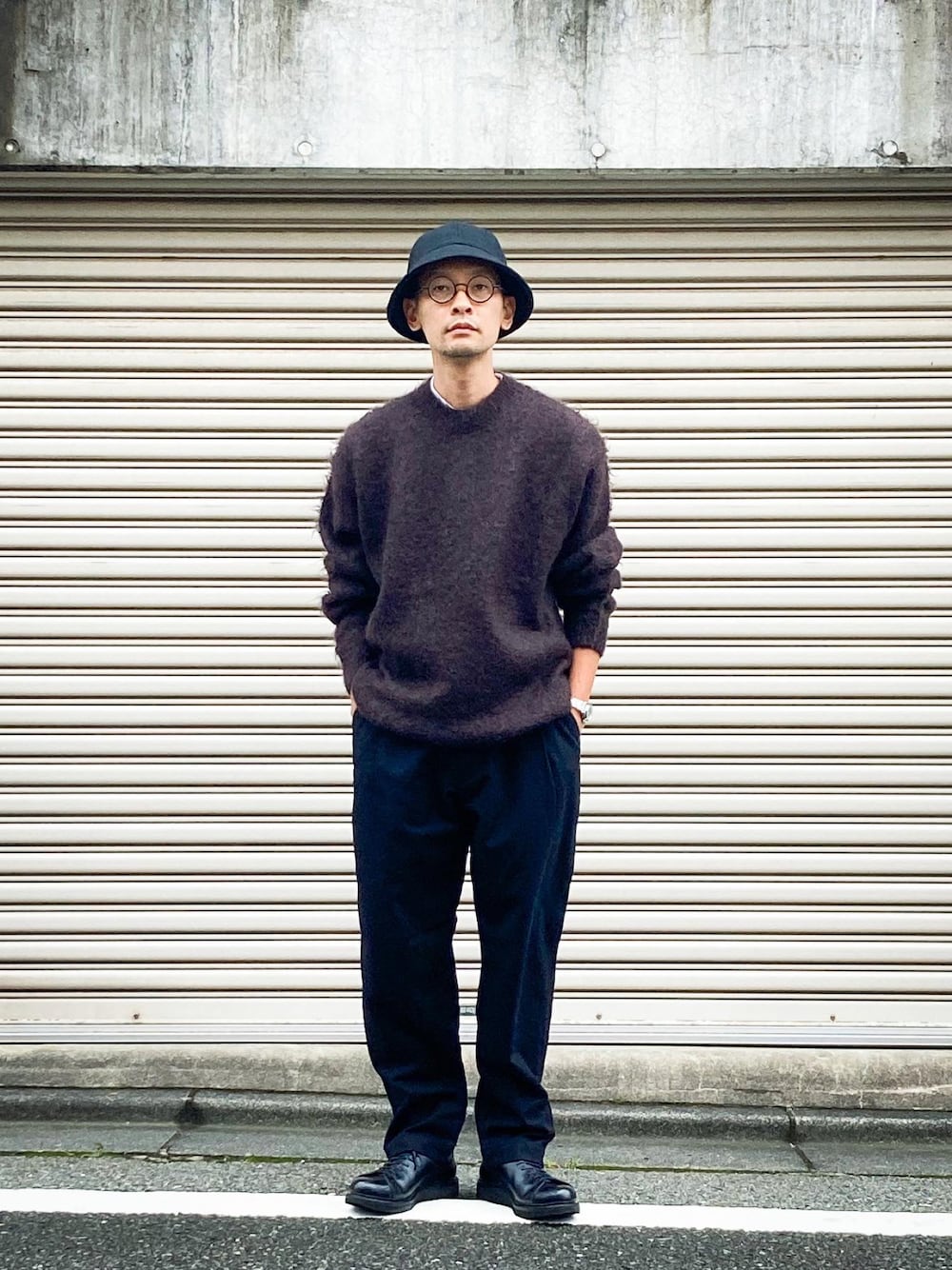オーラリーのモヘアニットが主役。 シンプルに見えて素材感が抜群のため一枚で着れます。 今季ユニクロの小物はクオリティが素晴らしい。