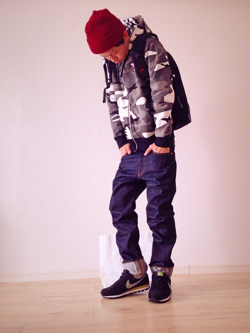 カメイライダーのパーカー「Small Box Zip Up」を使ったコーディネート