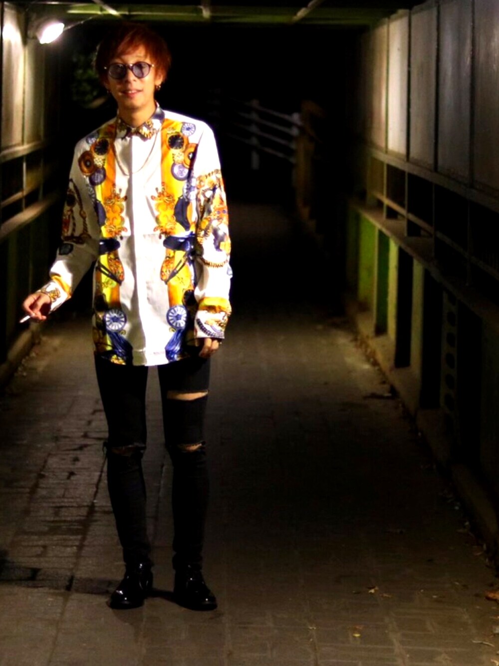 久しぶりの投稿です✨ 夜遅くに友人と撮影できる場所を探して 雰囲気あるトンネルで撮影しました♪ 最近のトップスは総柄がマイブームなので 今日はその内の1枚を載せたいと思います(^^)/ パンツはGUのレディースを買ってきて 手作業でダメージ加工にしました! これから沢山投稿出来たらなと思います♪