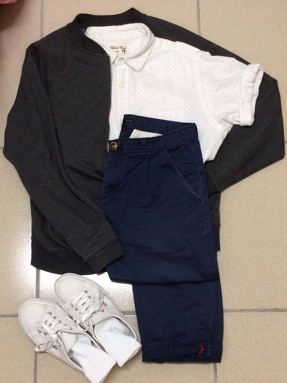 ホワイト系のスニーカーを着用したレディースの春コーディネートの1枚目の写真