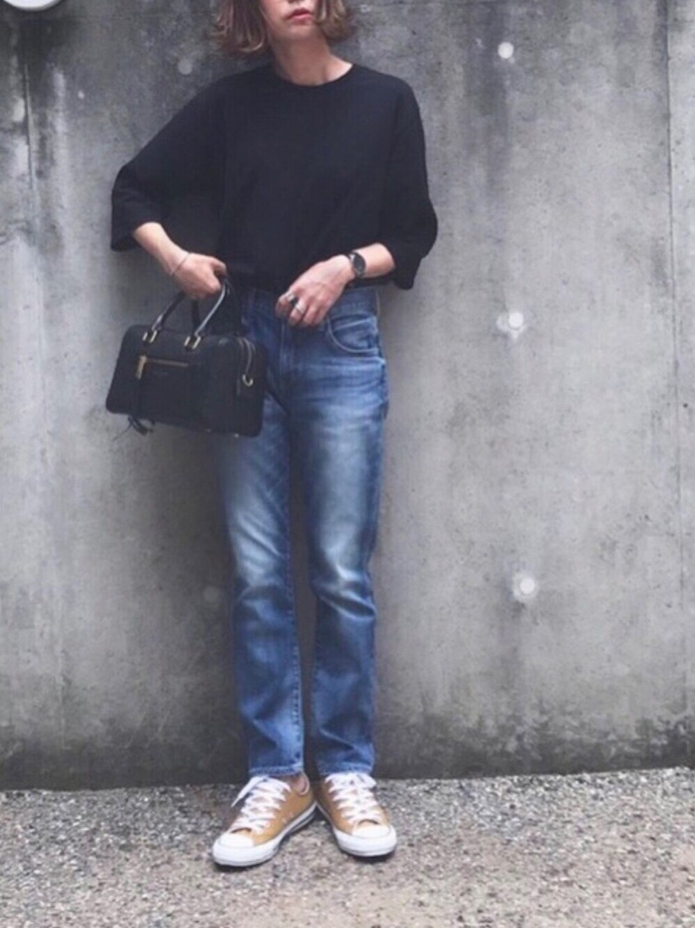 あさひのTシャツ/カットソー「オーガニックコットンロングTシャツ(5分袖)」を使ったコーディネート