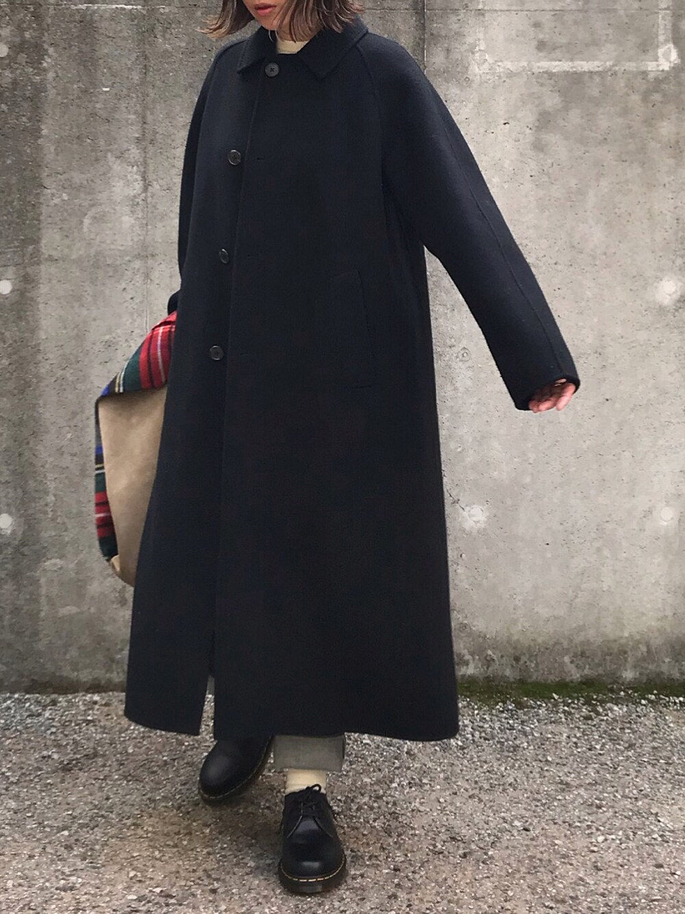 あさひのステンカラーコート「BALMACAAN COAT」を使ったコーディネート