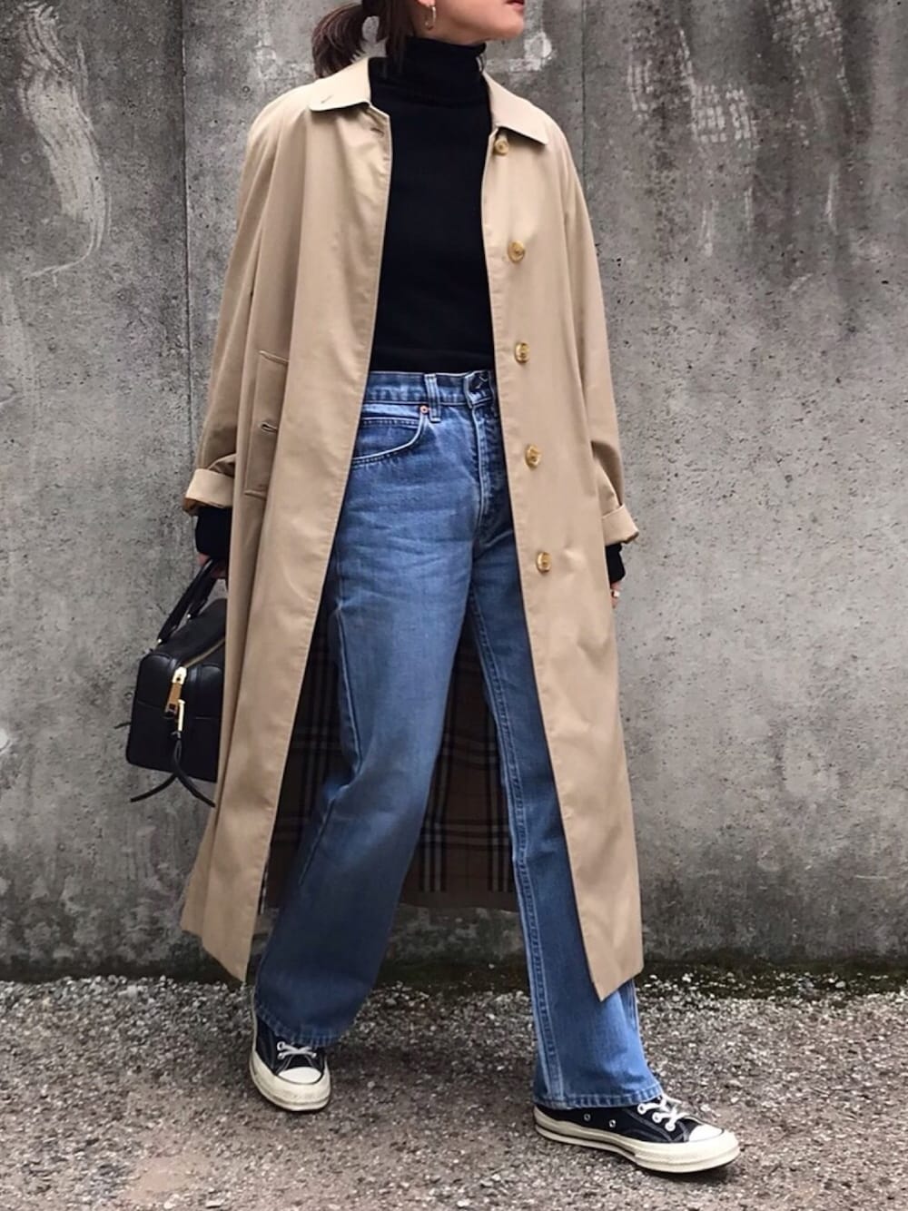 コートもデニムも古着です。