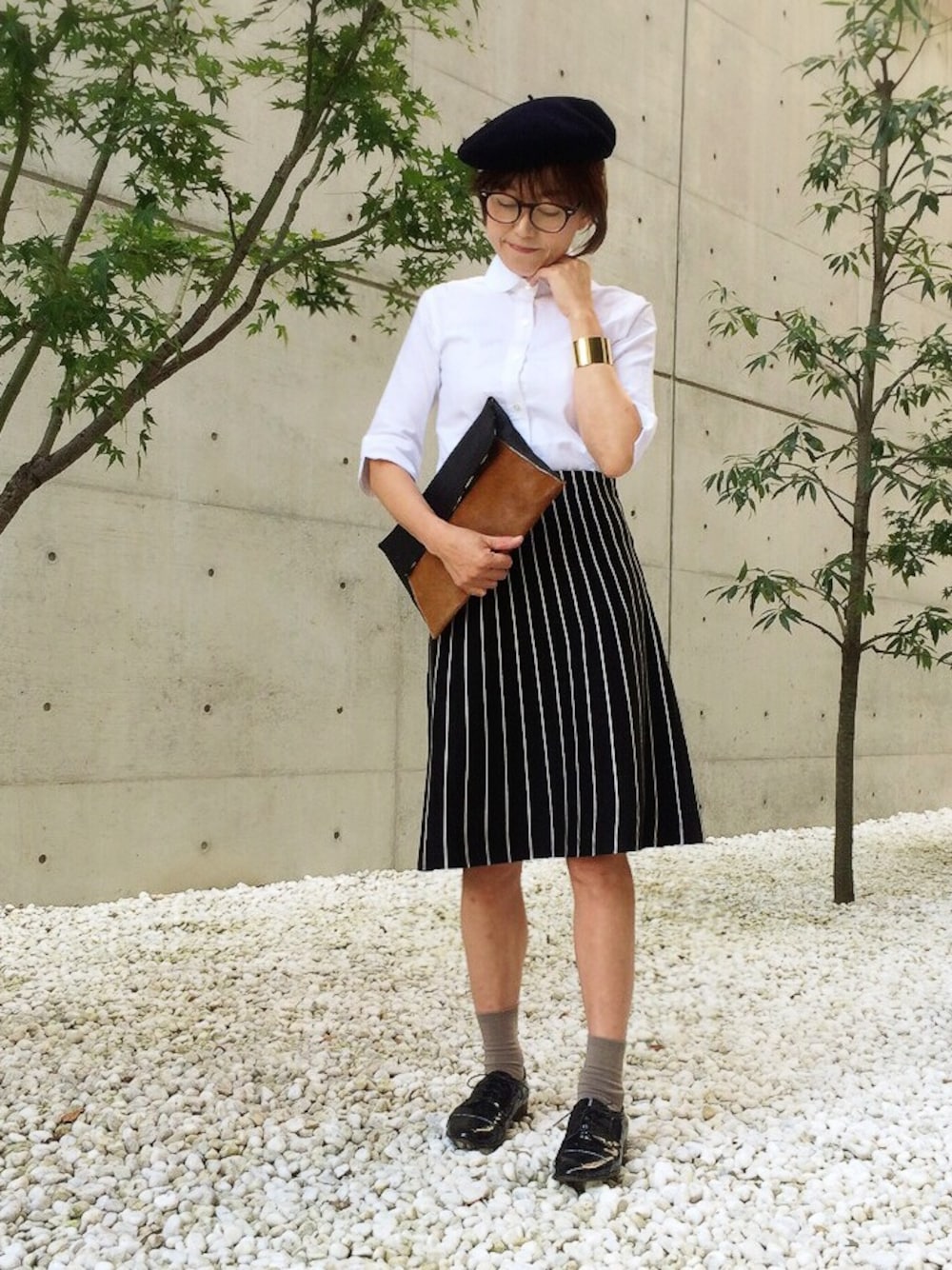あさひのクラッチバッグ「【COTTO/コット】 ハラコ×レザークラッチ」を使ったコーディネート
