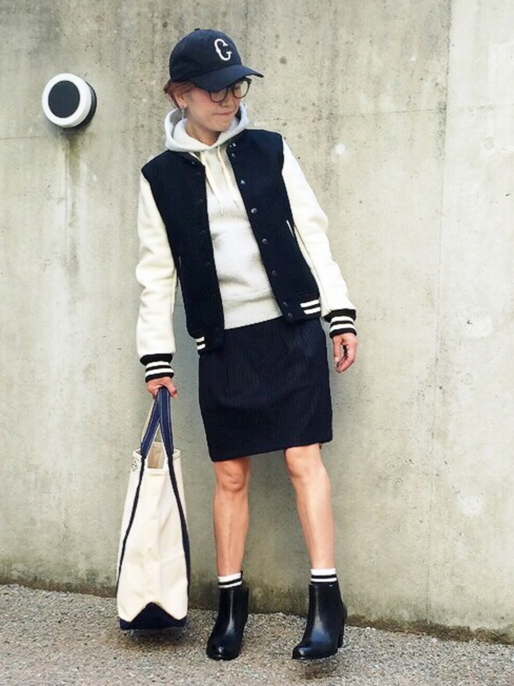 あさひのスタジャン「レザー×メルトンスタジャン/213-GTR-L141-BL015」を使ったコーディネート