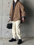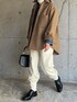 オーバーサイズ具合がちょうどいいマノンのC P Oジャケット。 レイヤードがとてもいいバランスできまります