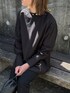 襟元の白ボタンが効いててめちゃくちゃ可愛いブラウス。