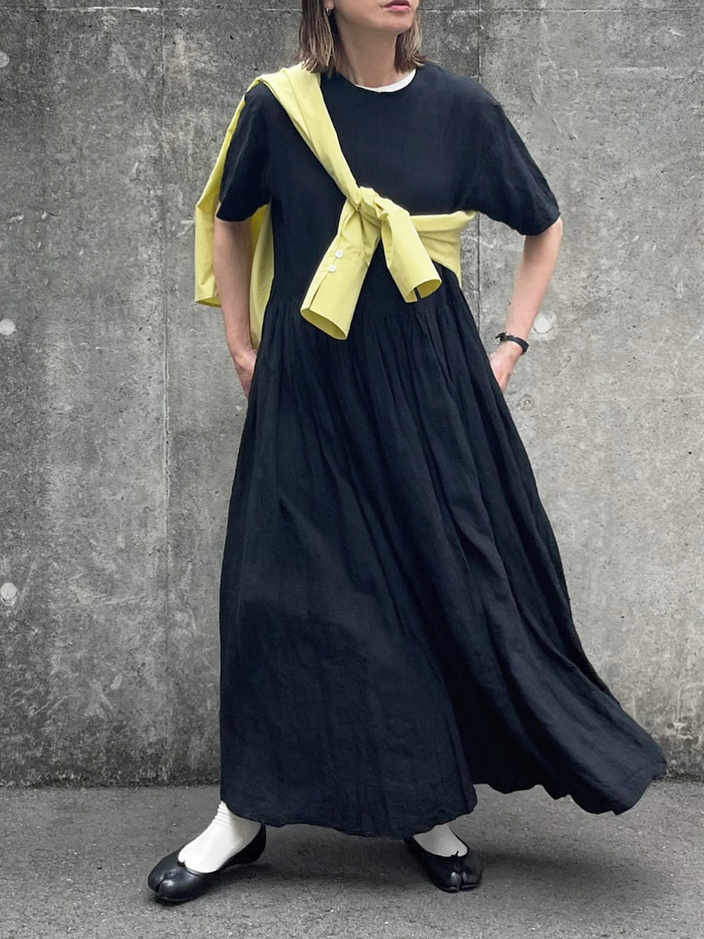 蒸し暑くなる季節にぴったりのリネンワンピースに、綺麗な色のシャツをプラスして、 梅雨入り初夏コーディネート。