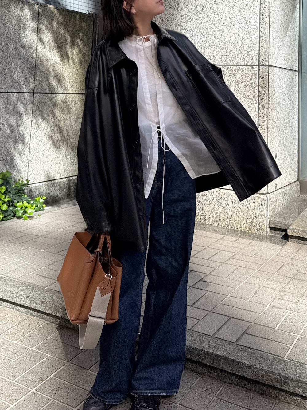 大活躍中のレザージャケット、 サイズ感もモードにならない感じも大好き。 シアーとかレースとかと合わせて、 ほんの少しだけ甘さを足すのが好きかも知れないです。