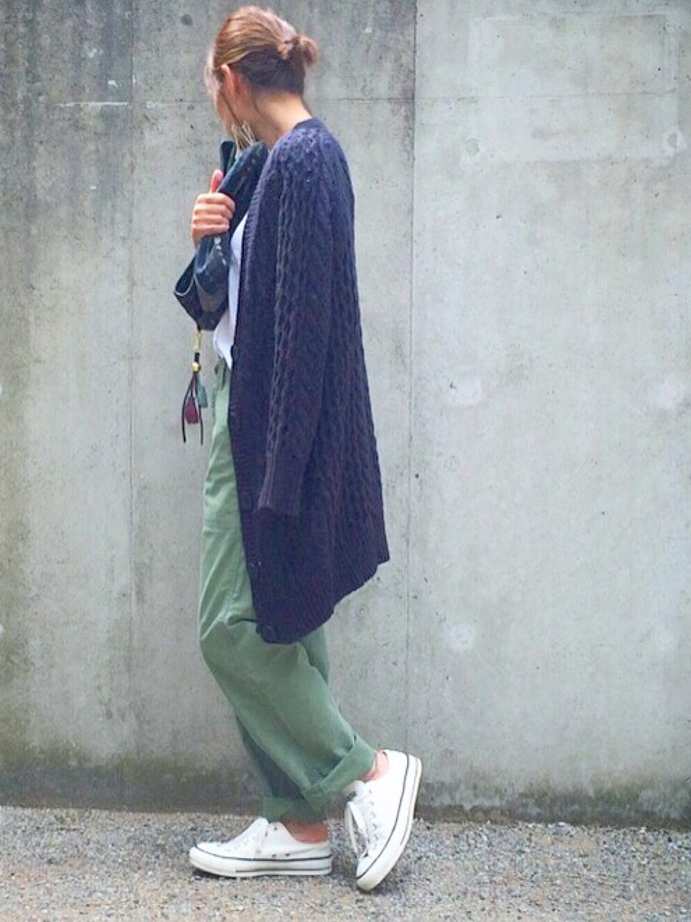 yanがベイカーパンツにロングカーディガン肩掛けしてるのがめちゃくち可愛かったんで、やってみたー🙈 私は大好きなカーキ×ネイビーで😊 見えにくいけど、しもちゃんのフリンジピアス、 めたくそ可愛いねん❤️