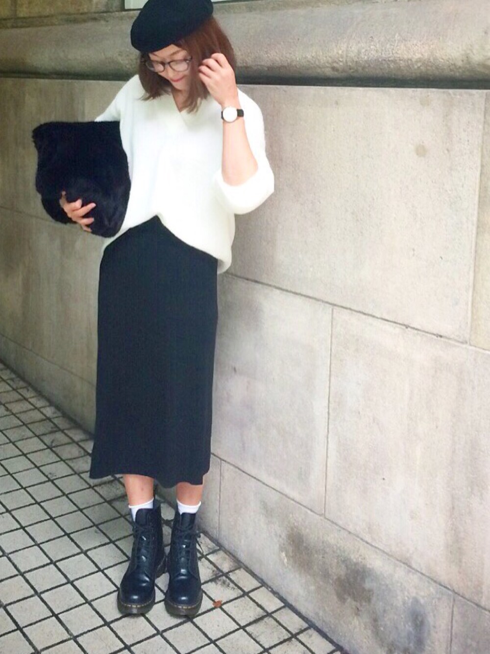 久々めがね。 オカンがそういうの履いてた! と言われるスカート。 #うちもや。 ウエストもゴムやしめっちゃ楽! 雨やったんで、マーチンで。