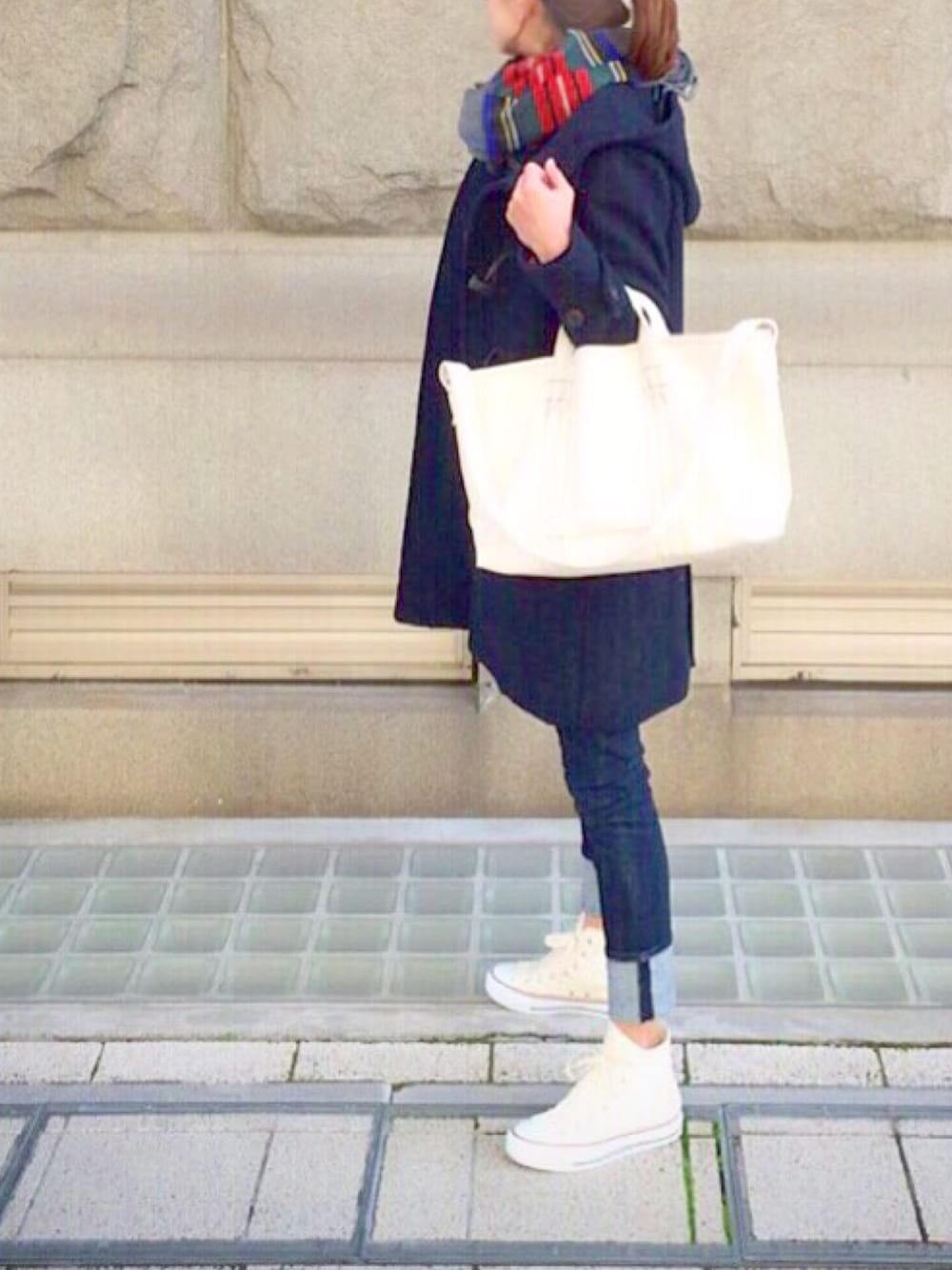 あさひのストール/ショール「BY JOHNSTONES タータンチェック カシミヤストール」を使ったコーディネート