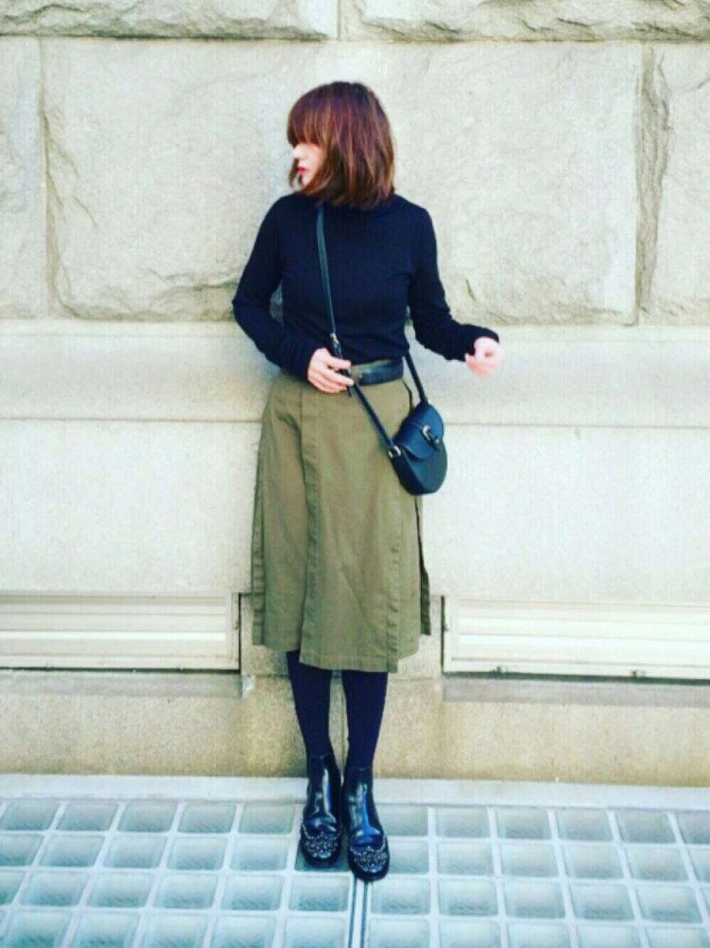 ラップスカート?巻きスカート? が、異常に好き😤 ほんと可愛いスカート、 早く素足で履きたい😌 カーキの色が出なくて、インスタの色加工したら 髪がヤンキー😭 ぶぉんぶぉーーん、のポーズ。 インスタ→amy102_happy