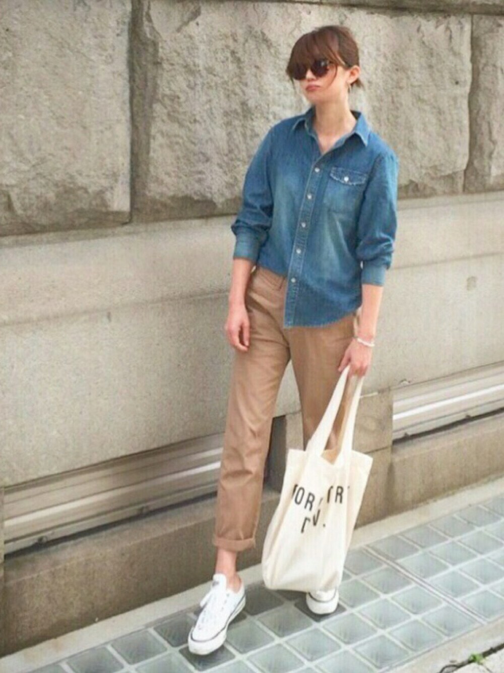 あさひのサングラス「〈SUNDAY SOMEWHERE〉Kiteys MARボストンサングラス」を使ったコーディネート