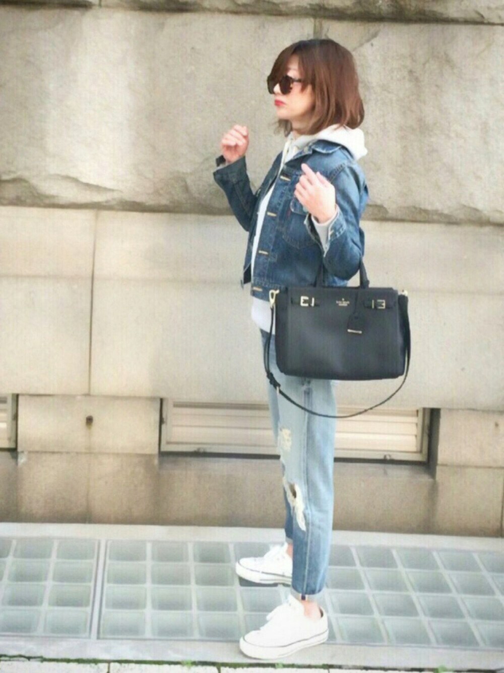 あさひのサングラス「〈SUNDAY SOMEWHERE〉Kiteys MARボストンサングラス」を使ったコーディネート