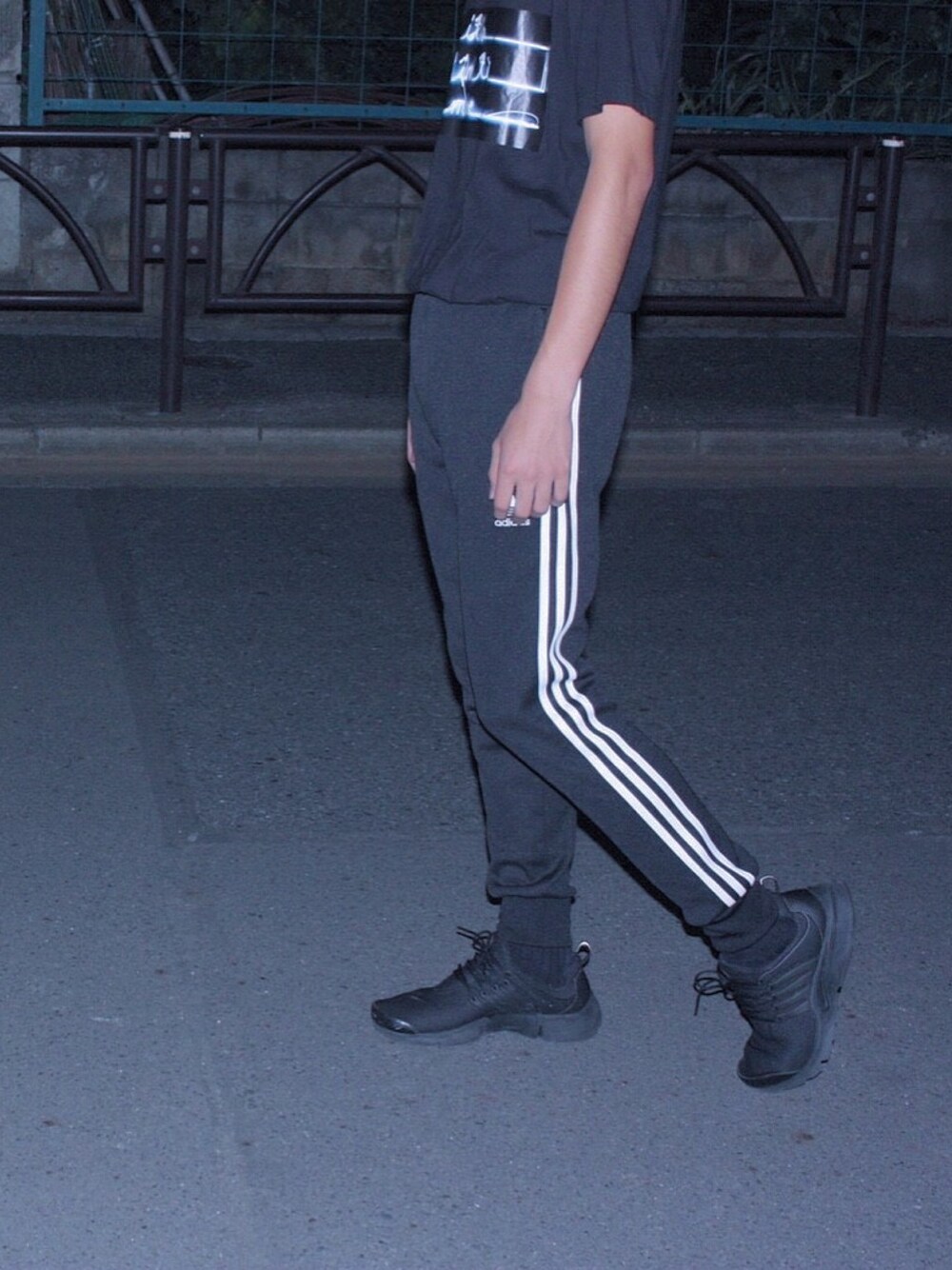 オールブラックスタイル! adidas系統でまとめるならスニーカーもNIKEじゃなくてadidasかY-3履きたかったけど持ってない…