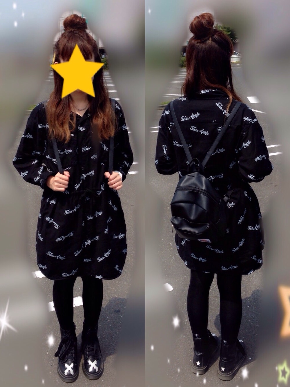 7月2日のコーデ⭐️ 仙台のアウトレットへお買い物👛😘 このシャツワンピはさりげなく星が入ってるんですー💓💓😍 羽織にもワンピにもなるシャツワンピはチョー優秀アイテム✨✨ 珍しくオールブラックコーデ🖤🖤