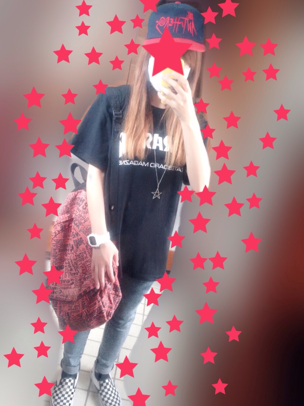 ストカジ⭐️⭐️ 最近買ったスラッシャーのTシャツ‼️ゆったり着れる😆💡 黒Tシャツ合わせやすくて良い🎵🎵 オーバーサイズラブ❤️