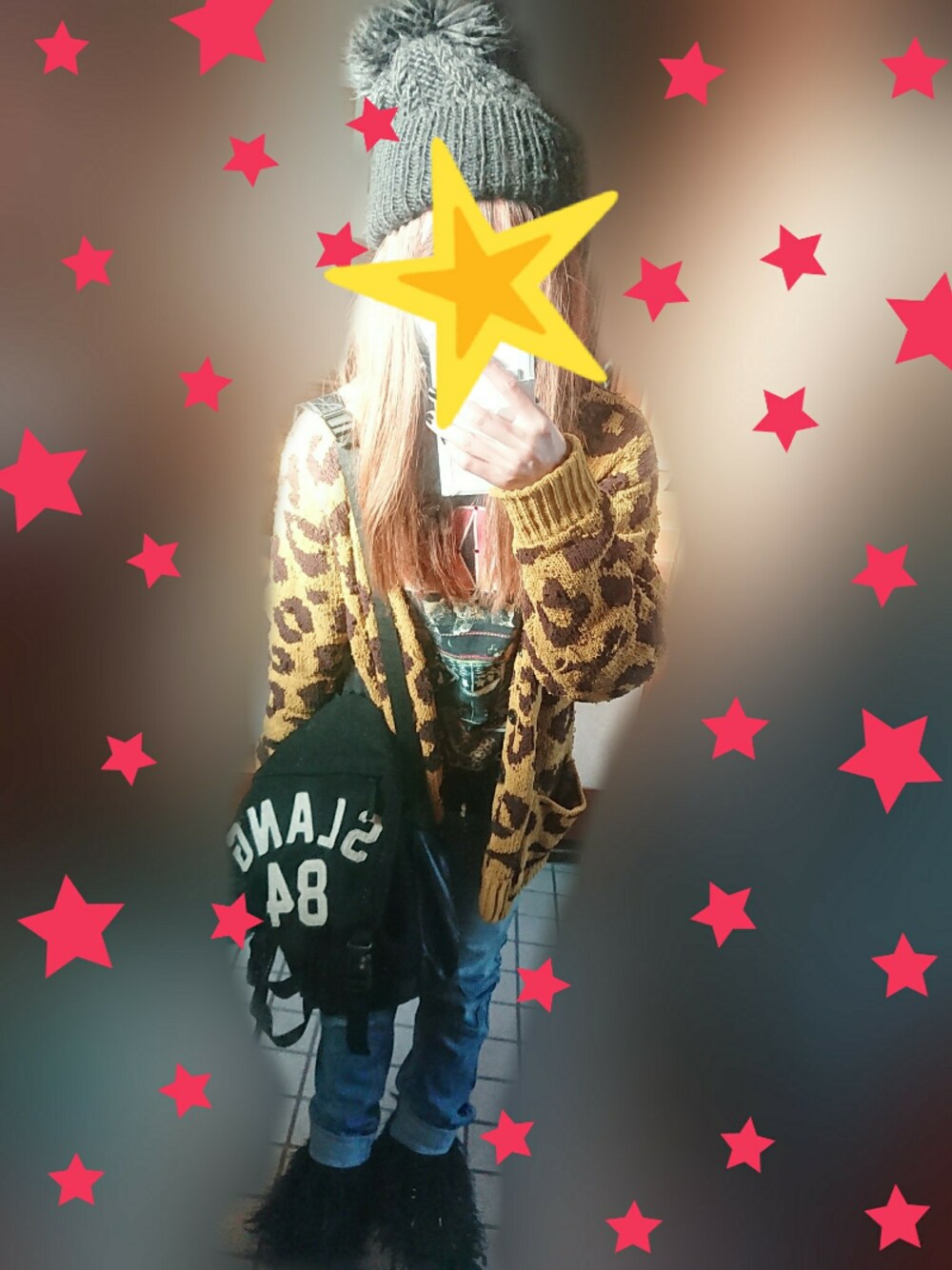 ヒョウ柄コーデ⭐⭐ 大好きなヒョウ柄ガーデを主役にしたコーデ💓😍 サイズも大きめなので可愛さ倍増⤴️⤴️😍😍💖 ロゴリュックは素材がフェルトなので秋・冬限定ですが何にでも合わせやすく使いやすい😆💕💕