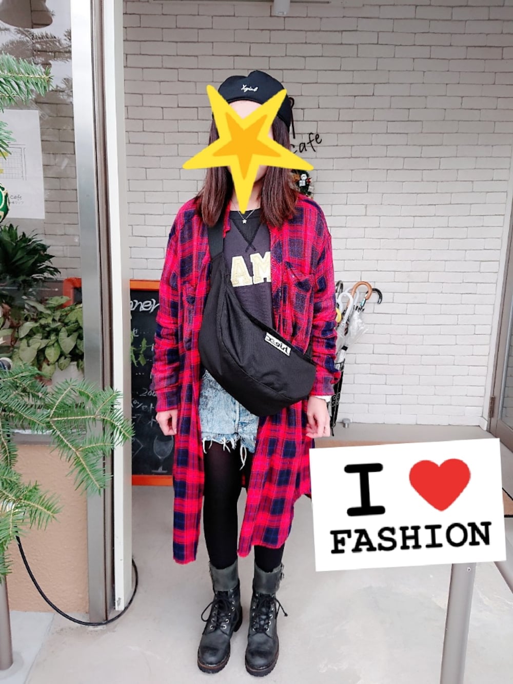チェックコーデ⭐⭐ チェックシャツを主役にするため他のアイテムをモノトーンに💘😚 ブーツ履いてロッカーぽくしました🎸