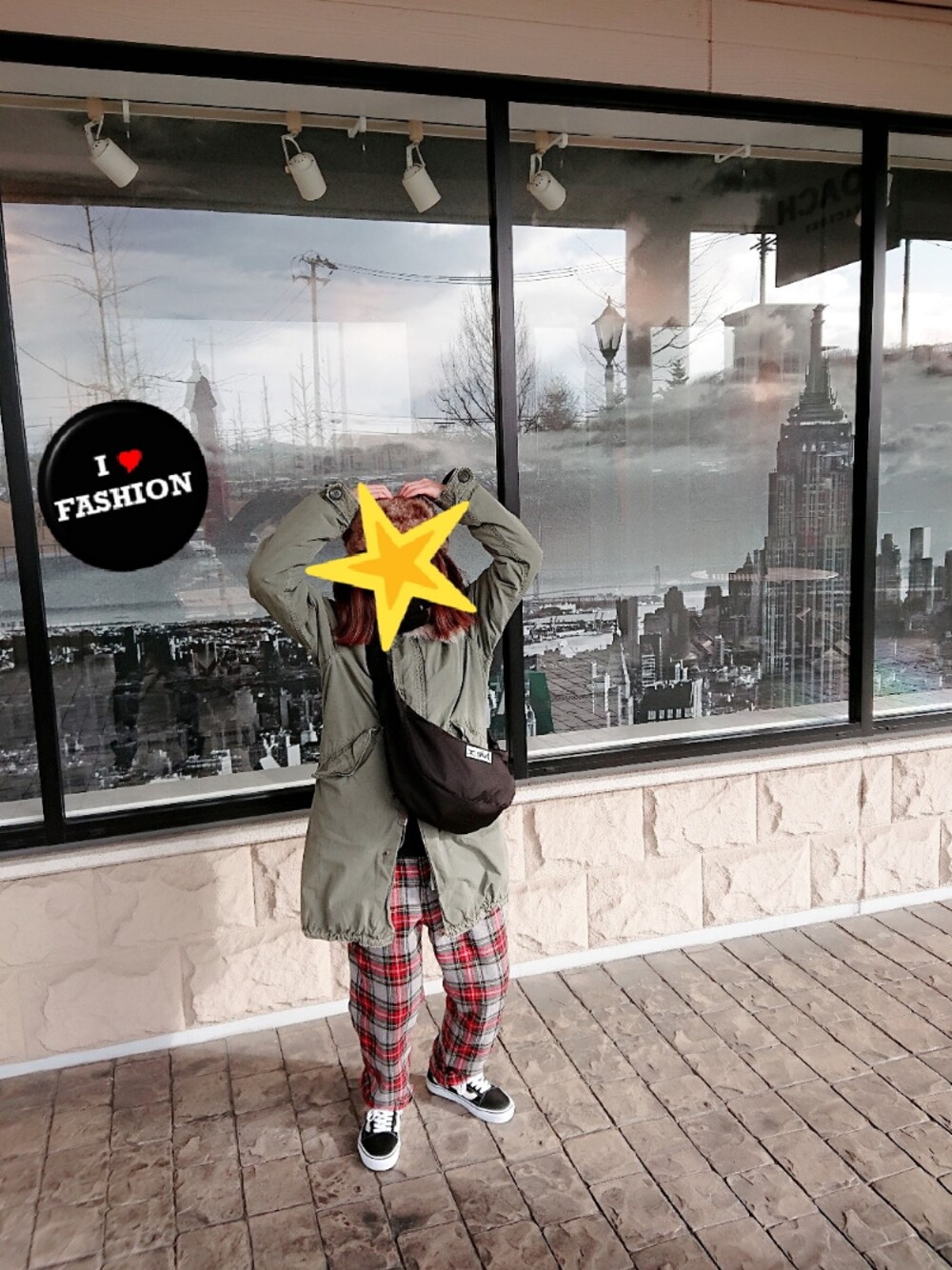 カジュアルコーデ⭐⭐ 久々のパイロット帽やっぱり可愛いし、あったかい💖😊 アウトレットに行ったのでチェックパンツにスニーカー、ウエストポーチで楽ちんコーデ😆💕