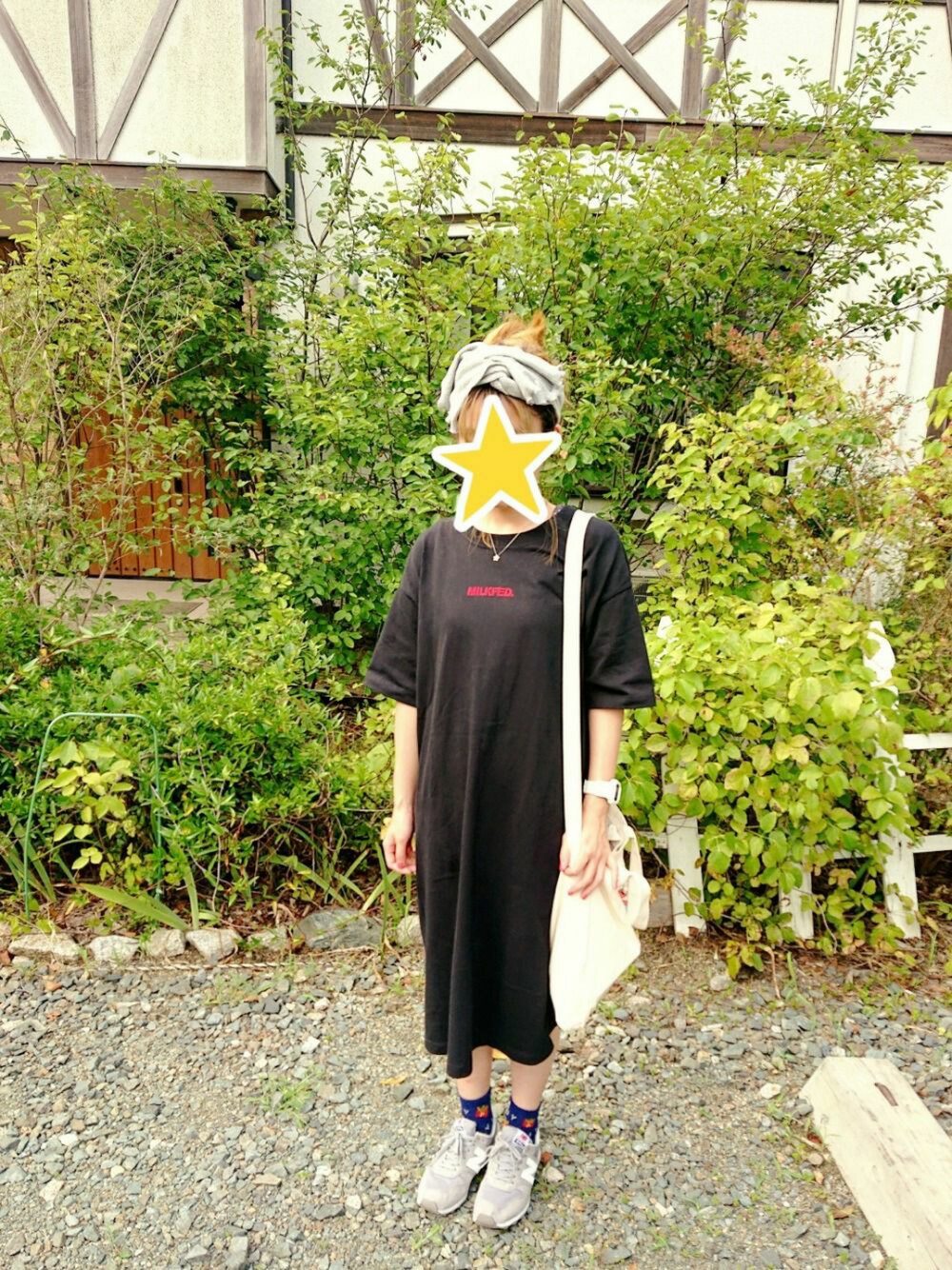 ワンピースコーデ⭐⭐ 長めワンピにターバンで甘めに💘🥺 柄ソックスとスニーカーでカジュアルな要素をプラスしました🤩