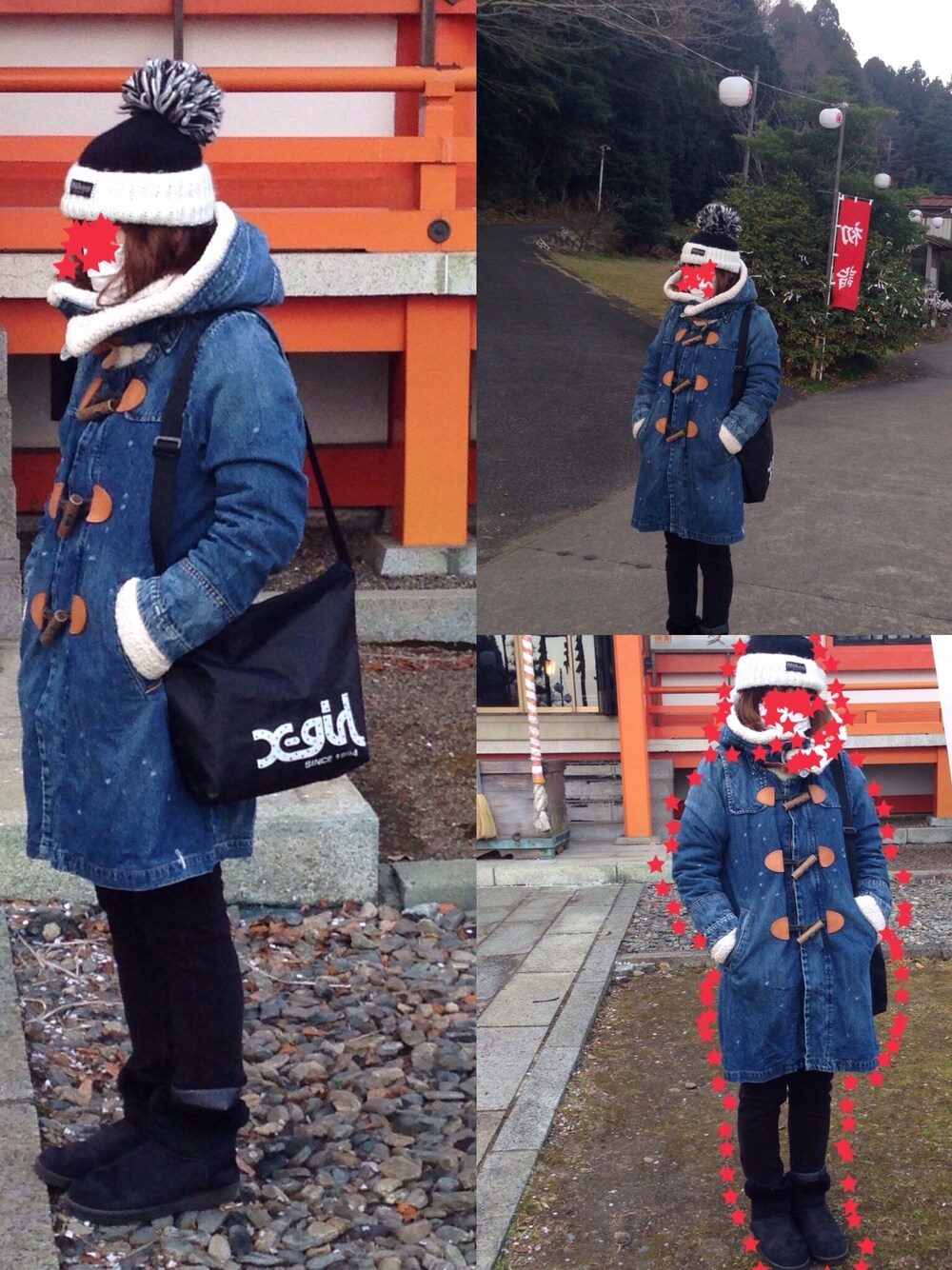 あけましておめでとうございます✨✨🎵(*^◯^*) 今年もよろしくお願いします🙏🏼🐣🎊 今日は神社に行って神様にお祈りしてきました‼️おみくじは末吉だったけど今年も去年以上に充実した1年にしたいと思います😎✌🏻️ RNAの珍しいデニムダッフルコートを使ったコーデ💓💓首元のベルト⁉︎を締めると超あったかい😍他のアイテムがシンプルでも、このコートを着ただけで個性的になれる✨✨🎵めっっちゃ使えるコートです💖💖