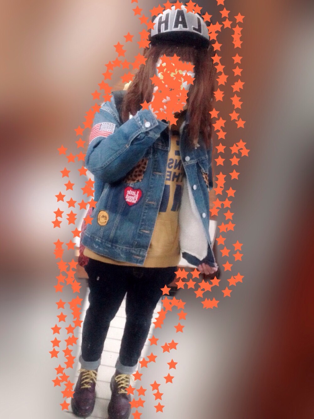 今日は初挑戦のデニムonデニム😎✌🏻️ パンツとGジャンの濃淡がハッキリしてるから多分大丈夫だと思われます笑💦😁😝 パーカーとマーチン紐の黄色を合わせました🎵😄💓💓