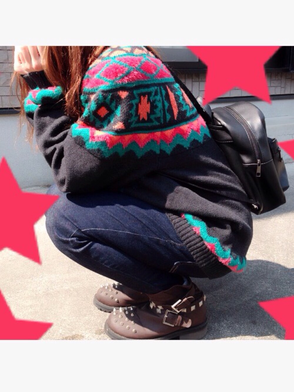 star★のニット/セーター「K2105 ネイティブ柄ニットプルオーバー」を使ったコーディネート