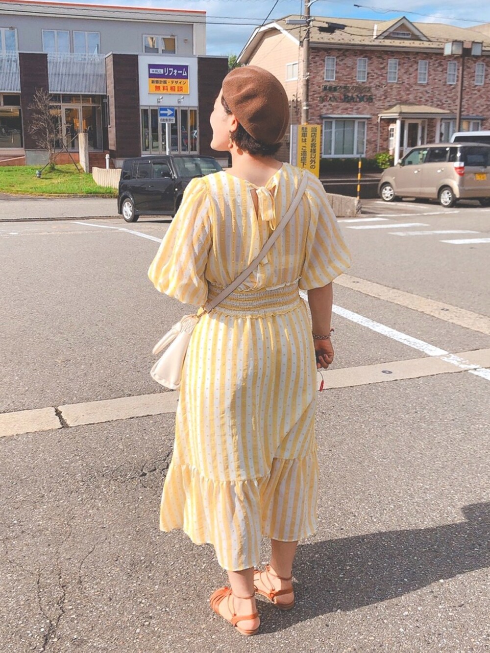 茉莉愛のワンピース「ストライプカシュクールバックリボンワンピース」を使ったコーディネート