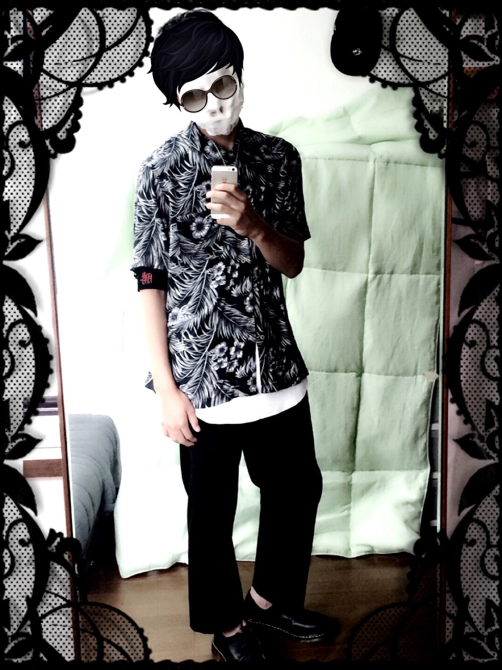 暇すぎて遊んでたらできた作品。 題名は《レペゼンクソ田舎のキモいヤンキーがアニメのデスノートを見た翌日》 ヤンチャっぽさを出すためになんか【勝】って書いてあるアームバンドが落ちてたので拾ってつけました。 洗顔してたらなんかこれ思いつきました笑