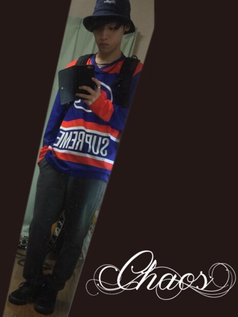 久々のsupreme×champion。ピアスは写ってないけど左耳にvivifyのフープピアス。