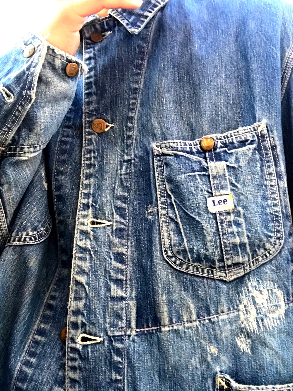 ブルー系のデニムジャケットを着用したメンズの春コーディネートの1枚目の写真