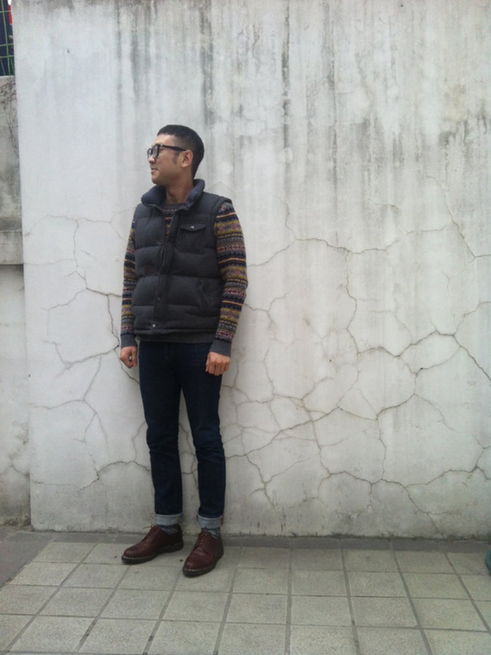데님과 니트 패팅베스트로 코디해보았습니다.