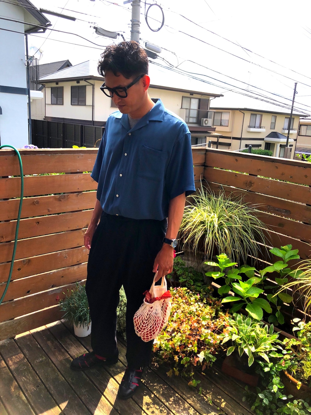 オープンカラーシャツあるある言いたいー。早く言いたい〜♬ …ボタンがほつれがち〜。 いつもありがとうございます。コーデについては最近お気に入りのバッグ、というかネットw 物が落ちがち.なのでバンダナでアレンジしています! ☀️今日は馬刺しを求めて旅に出ます☀️