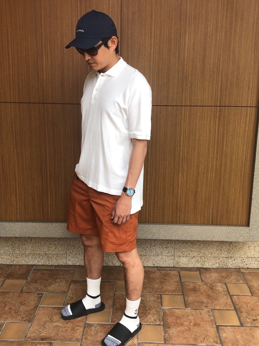 ゆるポロコーデ パンツはユニクロのワゴンセールで調達。 ソックスはタビオ。