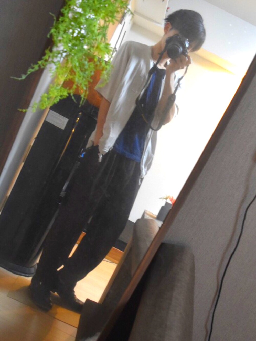 薄い羽織りものは 肌寒い雨にも即時対応できるニクいやつ . ゆるめながらも好きな組み合わせ やっぱベージュとネイビーは最高です . . . ちなみに最近ジムに通い始めました。