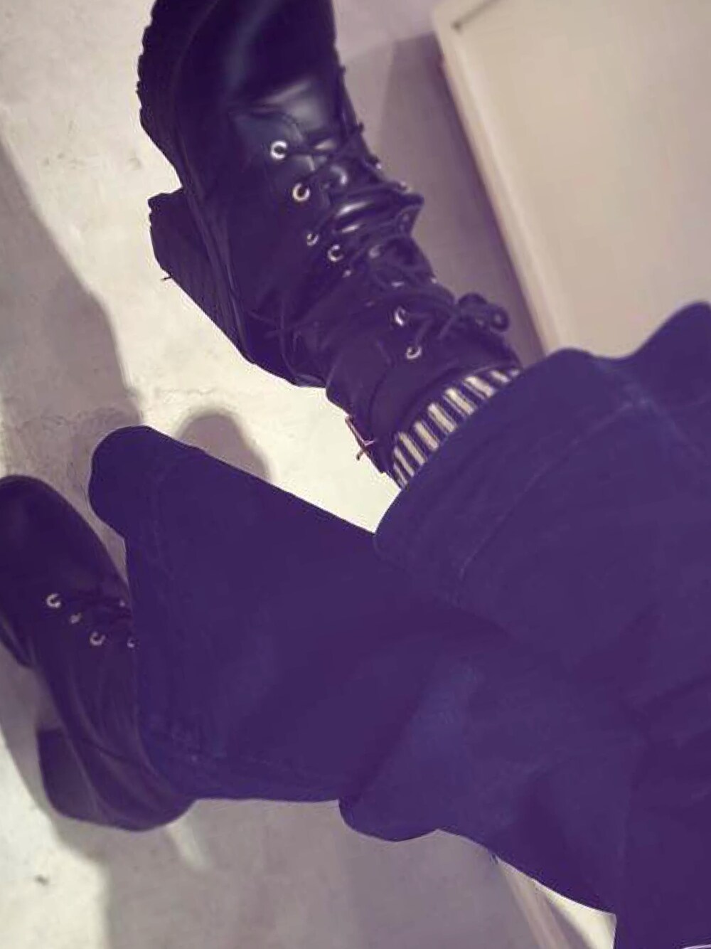 厚底ブーツにリトアニアンマルチクルーソックス