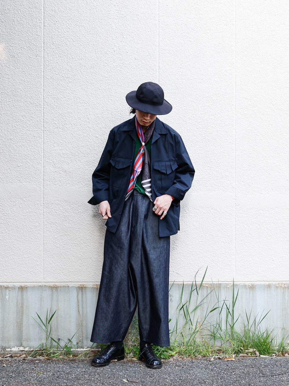 ドレス×カジュアル×ワーク の絶妙なバランス感。 やり過ぎず、でもシンプルにし過ぎず。 sus4cus.ではそんな上質なスタイルを提案しています。 詳細 デニムはシルクデニムをスラックス型で製作することにより、いわゆるジーンズとは一線を画す上質さをプラス。 羽織りは折り紙の様なタックデザインが特徴のシャツ。 シルク100%のスカーフを挟んでカラーを指しつつ、やり過ぎないようにワークシューズを合わせて抜け感を演出。