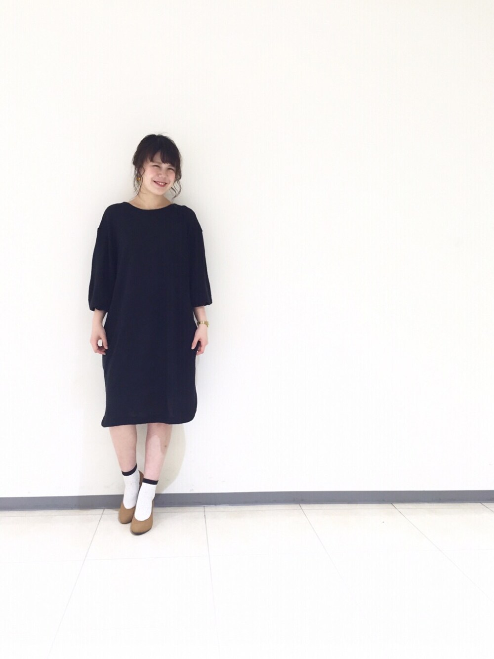 ゆったりやわらかワンピース👗 ブラックは小物使いでイメージが がらっと変わります😏