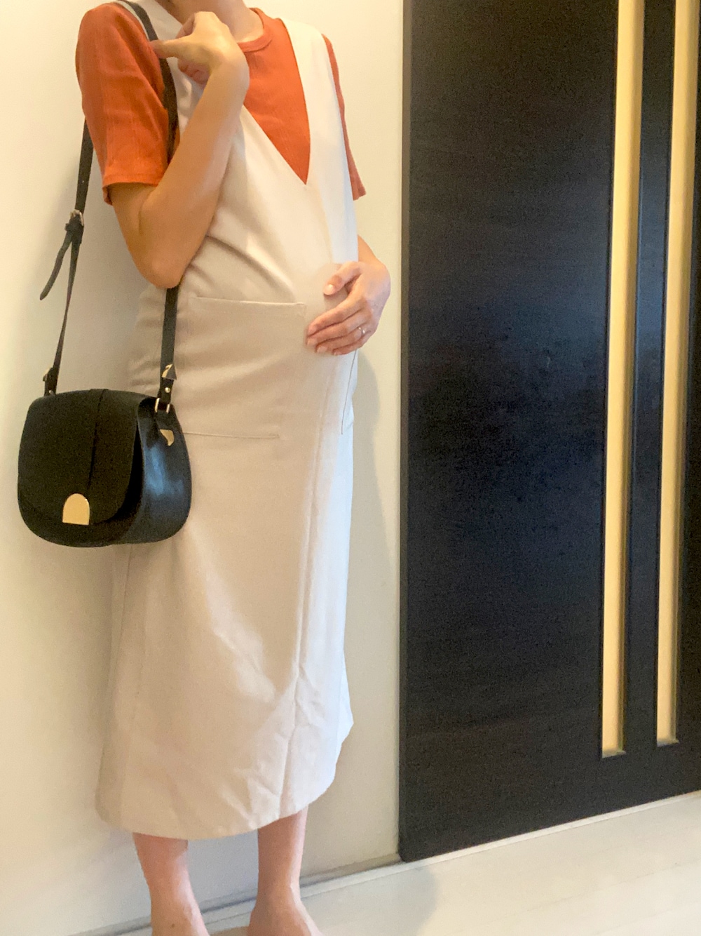妊娠8ヶ月…🤰 写真はそんな出てるように見えへんけど、横から見たらすごい😂 会社の人に、もう産まれそうやん!って言われた😂 この服も、あと少しで入らんくなりそう(笑)