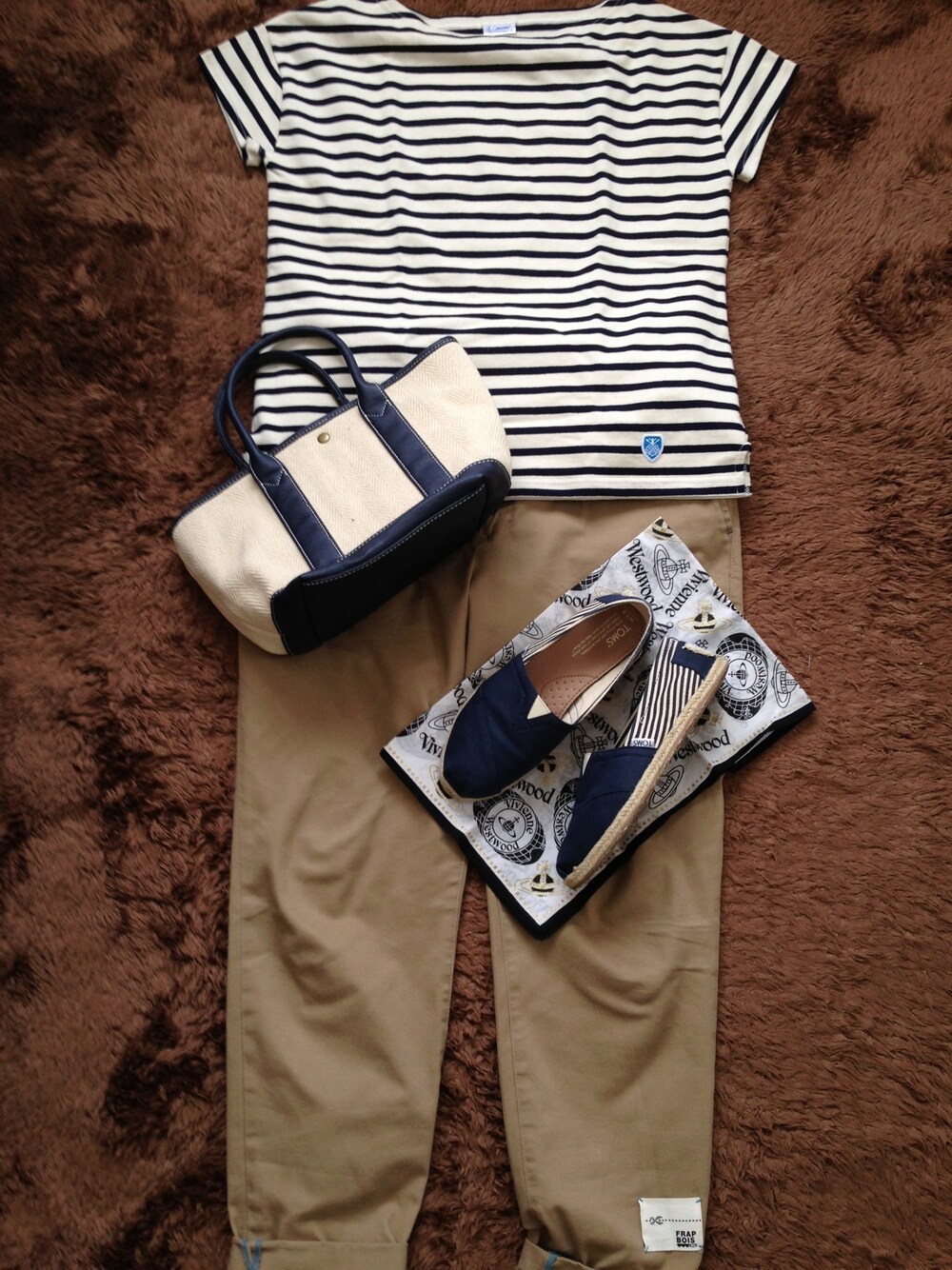 トップス * ORCIVAL ボトム * フラボア ハーフチノ シューズ * TOMS バッグ * 贈り物 やっとお休みー! また暫くお休みなし(´Д` )なので、久々の美容院やら、日用品の買い出しやら、なので、歩き周りやすいやつです。